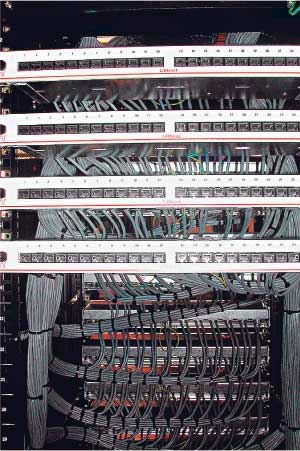 Samozrejme, s takými nasýtenia budovanie informačných systémov prenosu dát je nemožné bez kvalitné prenosové médium. Bol vybraný štruktúrovaný káblový systém (SCS), ktorý umožňuje SV'prepojenie zariadení, ktoré sú kdekoľvek v budove a mimo. SCS je postavený na vybavenie firmy Nexans s umiestnením prepínanie uzly (Obr. 7) na všetky podlažia administratívnej budovy. Priestor, kde sa príbeh prepínanie uzlov, ktoré sú tiež používané pre vybavenie LAN systémy, bezpečnosť, automatizácia, atď SCS má viac ako 1200 porty na pripojenie zariadenia koncových užívateľov a o 170 porty pre pripojenie technologických zariadení. Na zlepšenie spoľahlivosti systému najviac zodpovedný nadbytočné údaje prenosových kanálov.